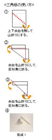 標本にするときは、ネットの上から蝶の胸を押し、動かないようにして、三角紙に入れ、それを三角ケースに入れて持ち帰ります。